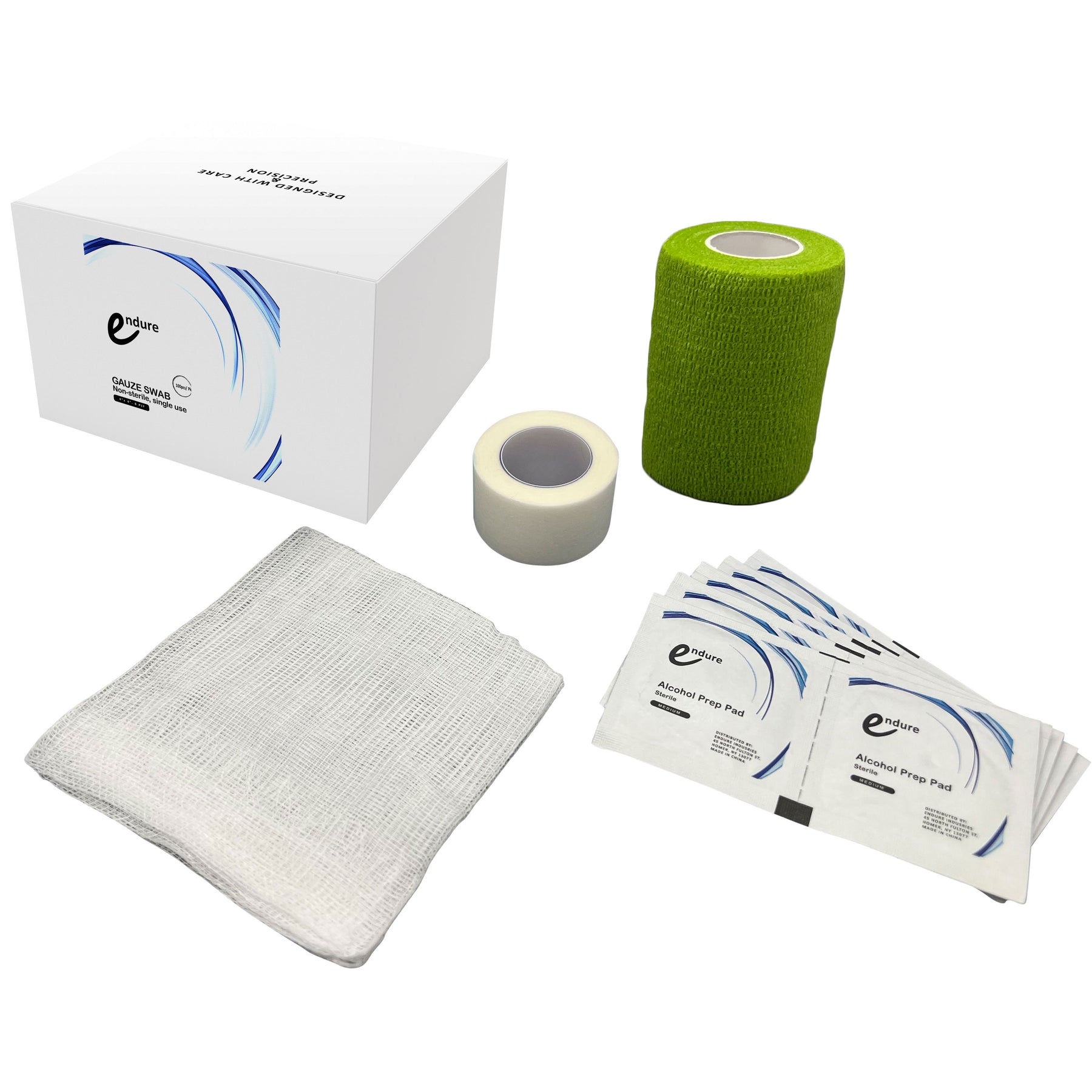 Endure essential wound care kit that can be used as a first aid kit during difficult times, with options for cleaning wounds, as well as protecting, covering, and cushioning all types of wounds. 3-STEP. Clean, Cover, Secure